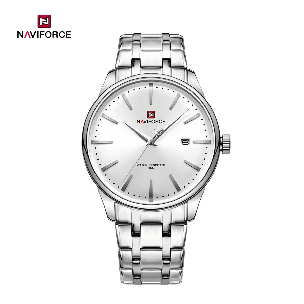 ساعت مچی مردانه اورجینال نیوی فورس نقره ای صفحه سفید