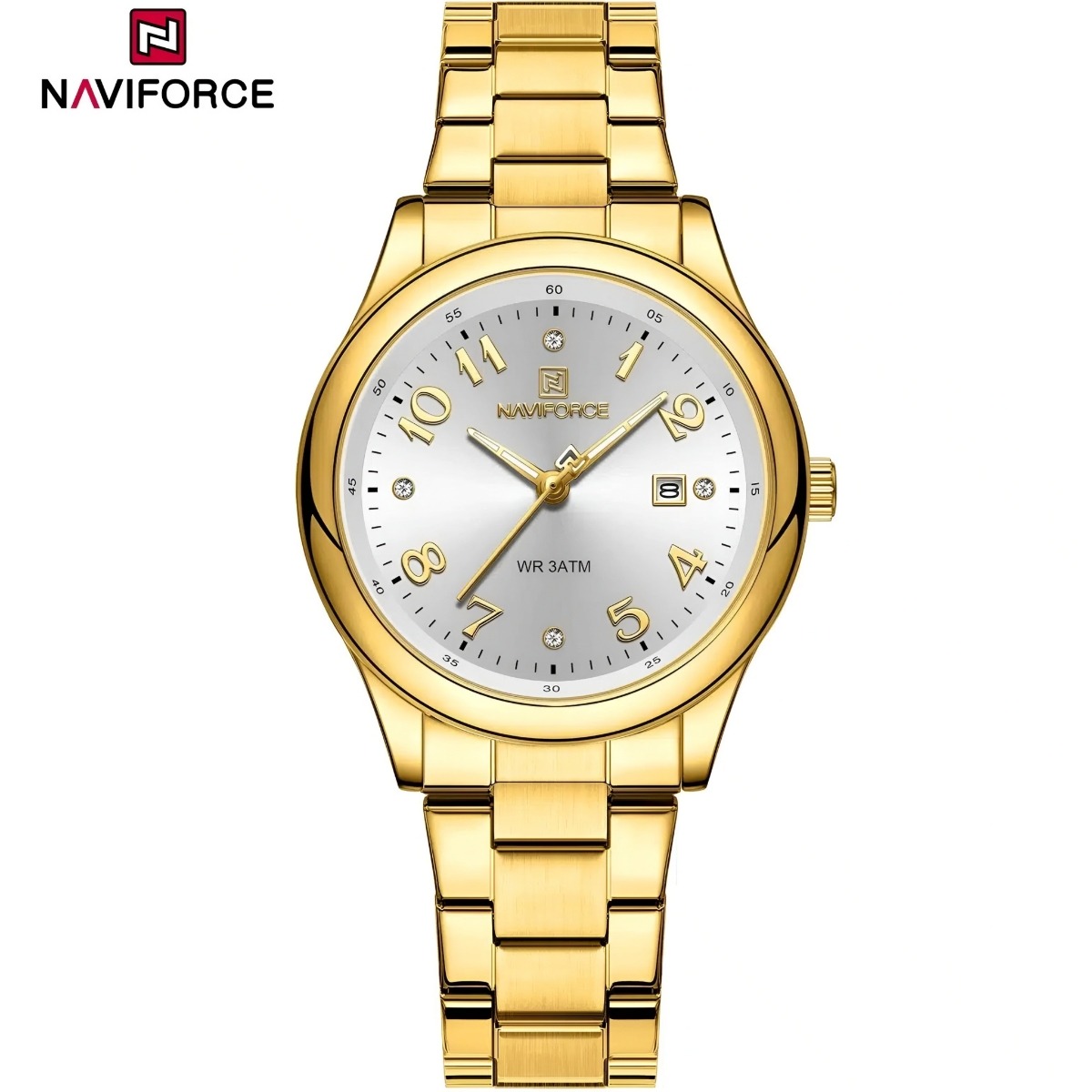 ساعت مچی زنانه اورجینال نیوی فورس طلایی صفحه سفید